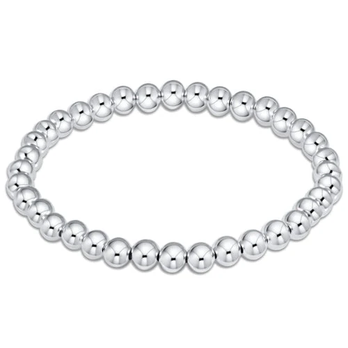 You’re classic, reliable, and go-to bracelet, now in sterling silver! Made with 5mm, sterling silver beads. Hand beaded on high performance elastic for a slight stretch to easily roll on and off your wrist.
