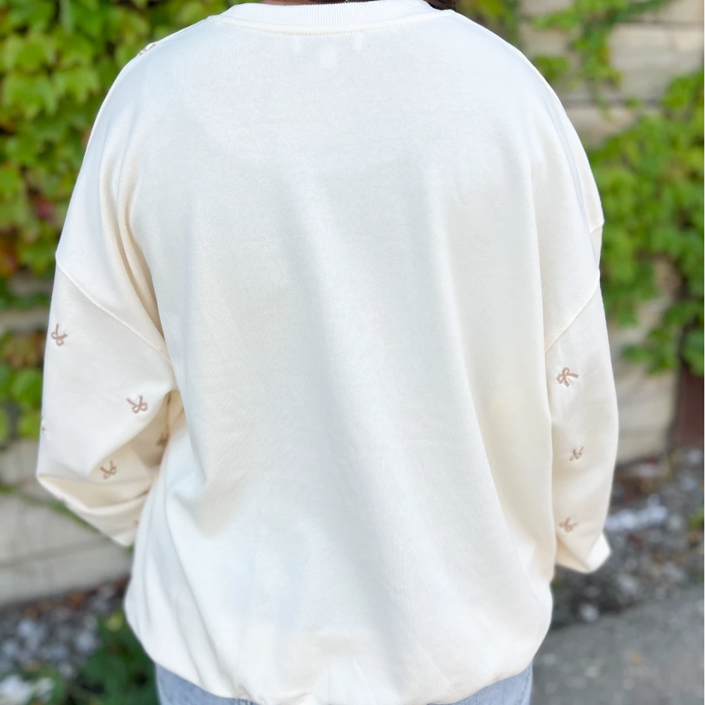 Ribbon embroidered long sleeve crewneck sweatshirt.