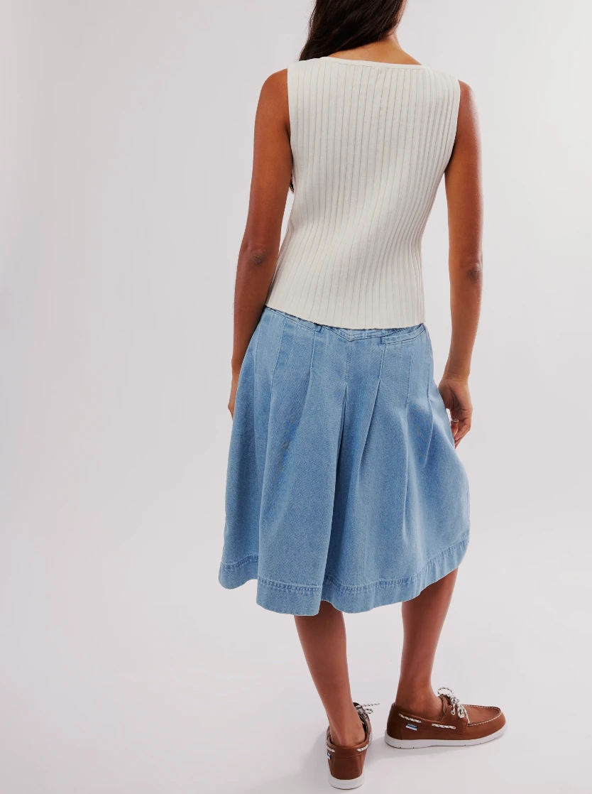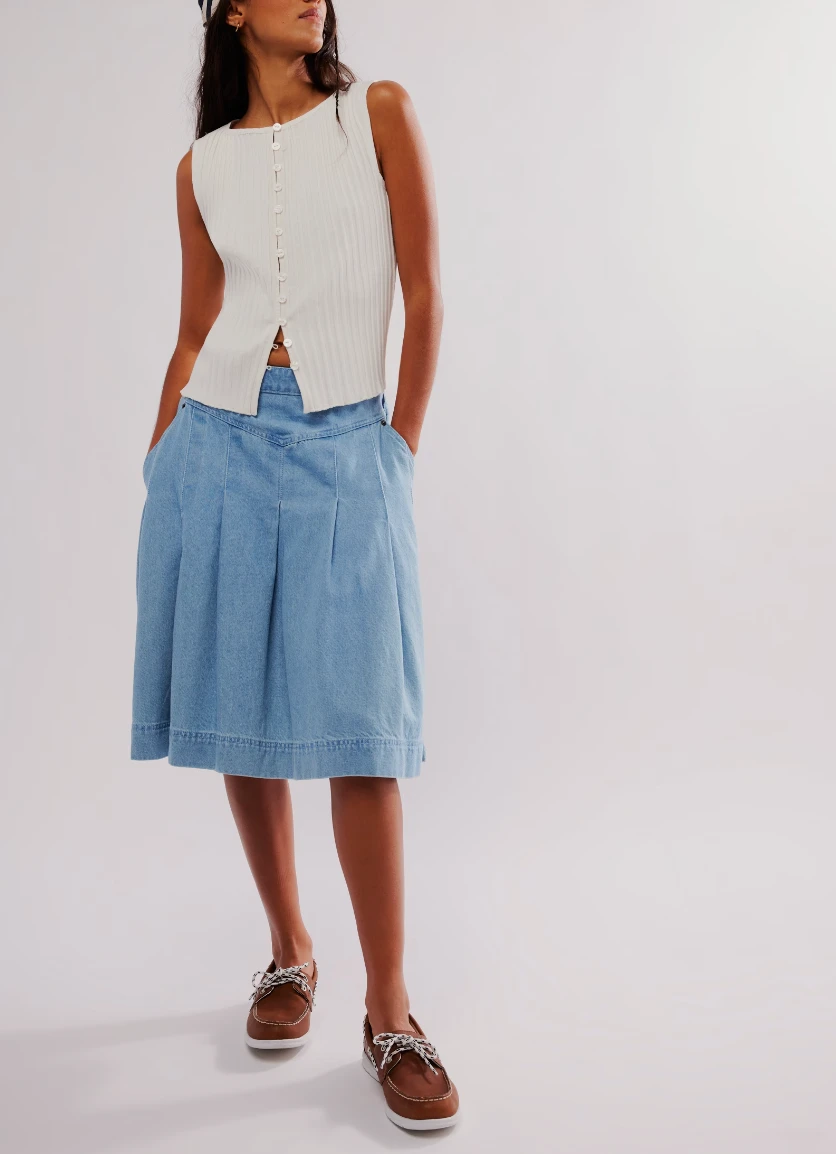 Features: Ribbed knit fabrication with a stretchy feel, scoop-neckline, button-front closures