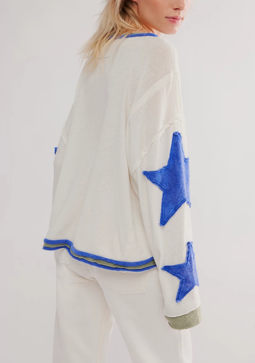 Top off your tee collection with this long-sleeve from our We The Free collection, featured in a soft cotton fabrication and slouchy silhouette with oversized star detail and raw trim throughout.