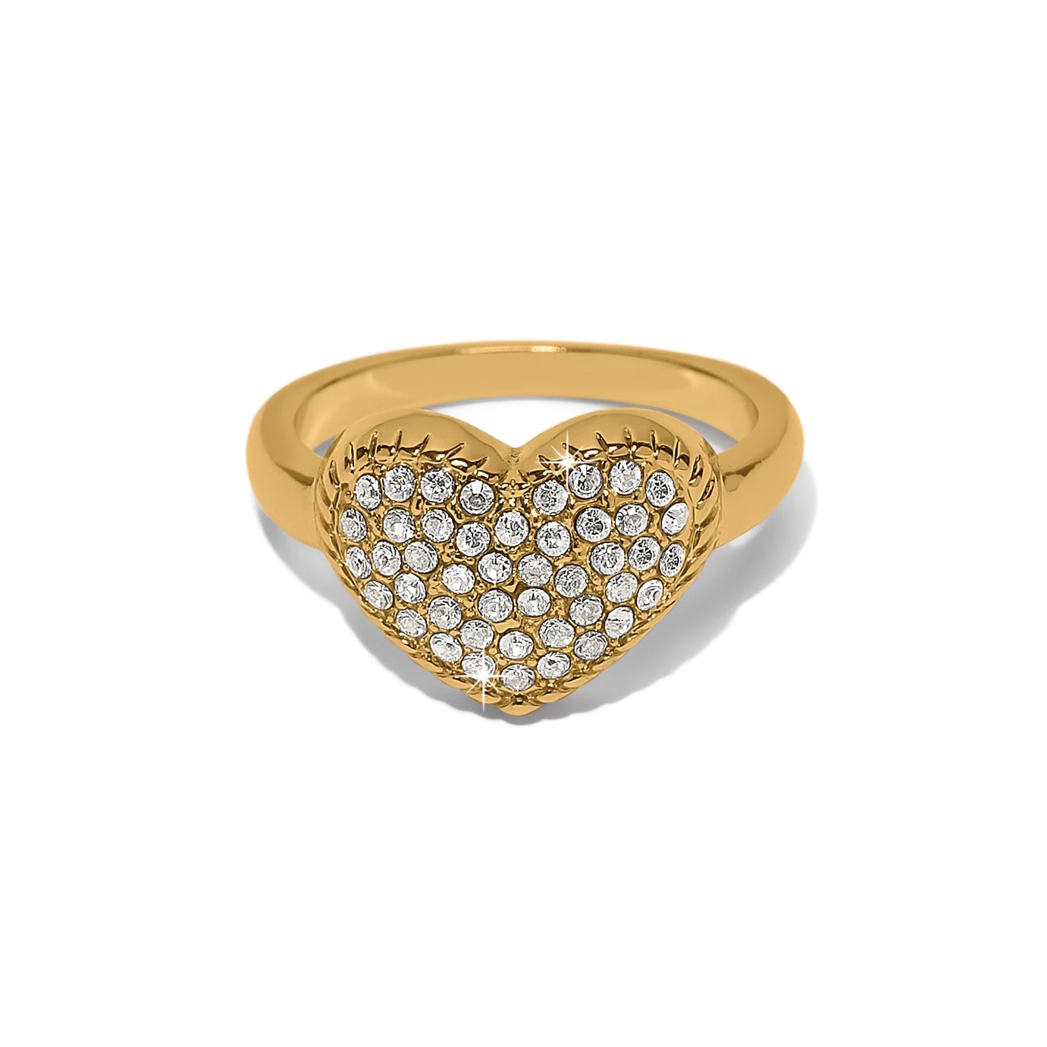 Wear your heart on your finger as an expression of love with this domed pave encrusted heart ring. The shape of the ring is designed to perfectly and comfortably wrap around your finger. A beautiful complement to the Celestia collection.