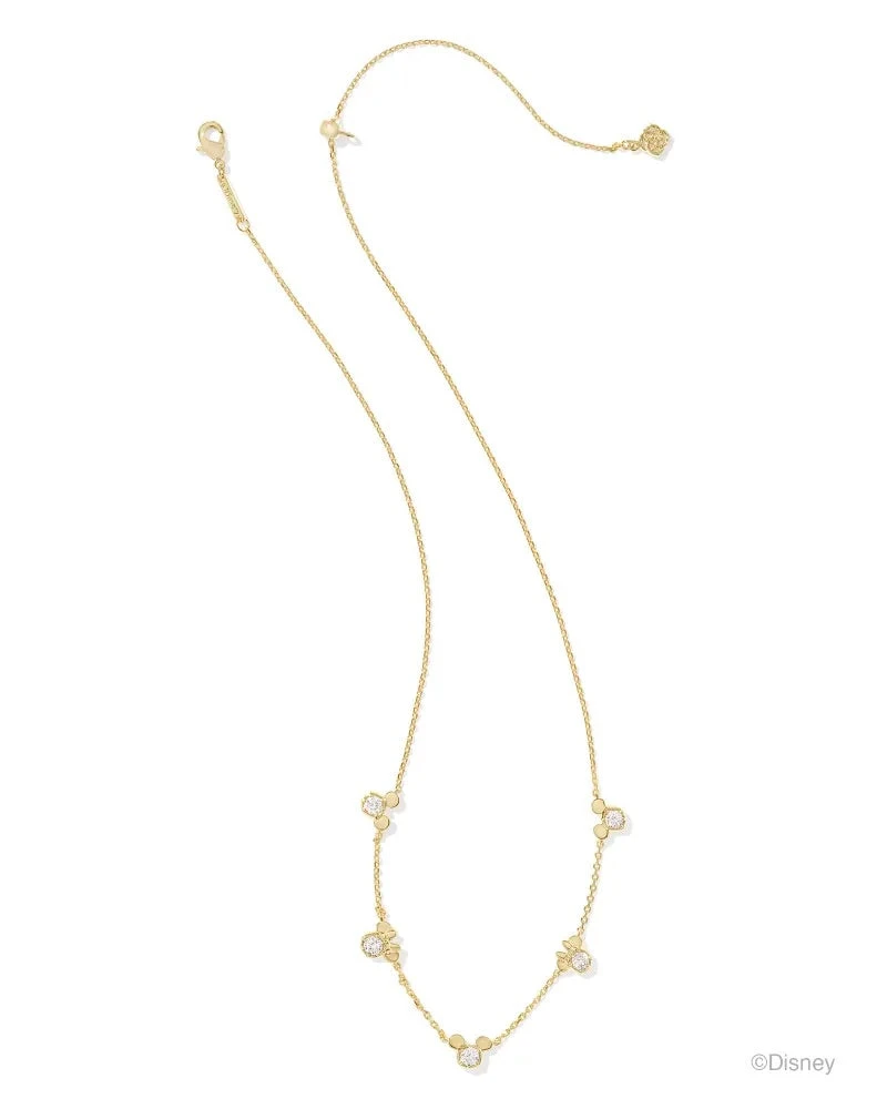 The Disney | Kendra Scott Gold Mickey Mouse and Minnie Mouse Strand Necklace in White CZ proves that style dreams do come true, after all. Disney’s everlasting sweethearts find style perfection in this minimal strand style, complete with sparkling crystal accents for a dazzling ever after.