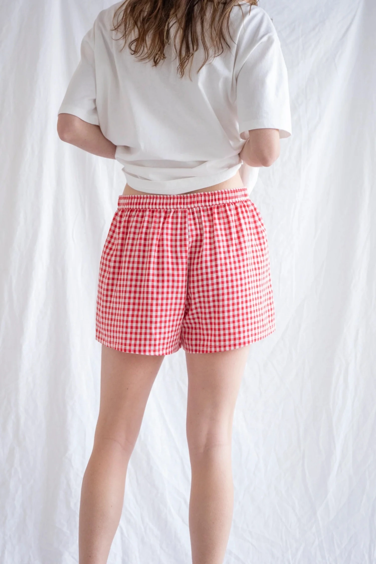 Lightweight and comfy gingham boxer shorts with button detailing and pockets.