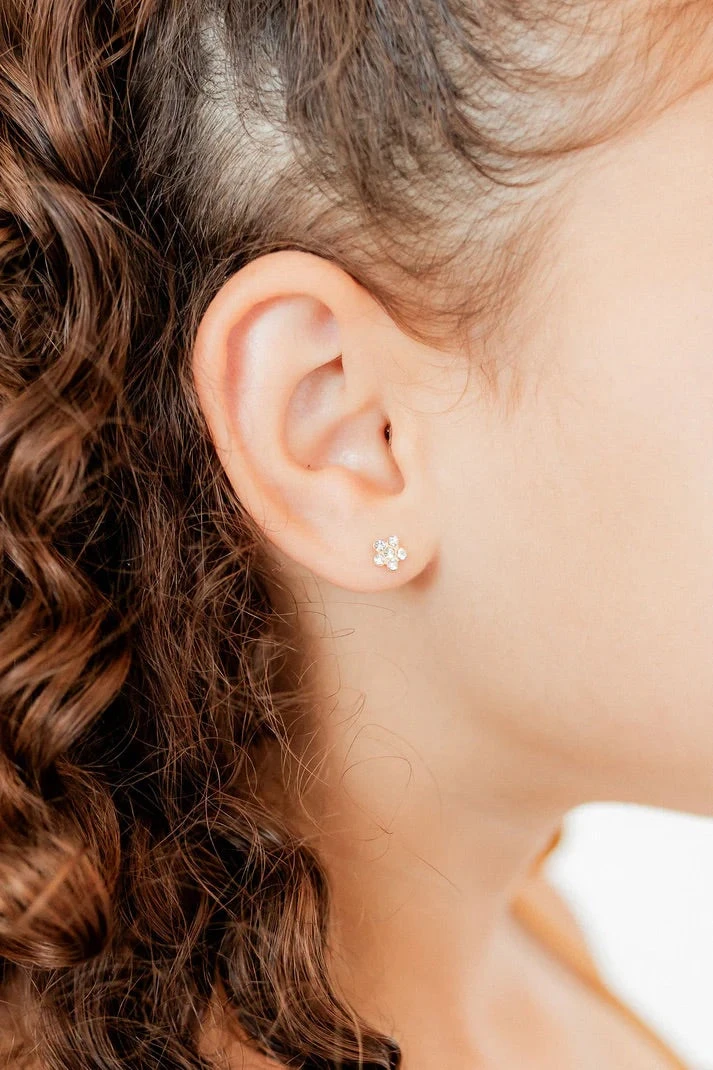 Style Description: Flower with 5 CZ stones embedded. 5mm in size.