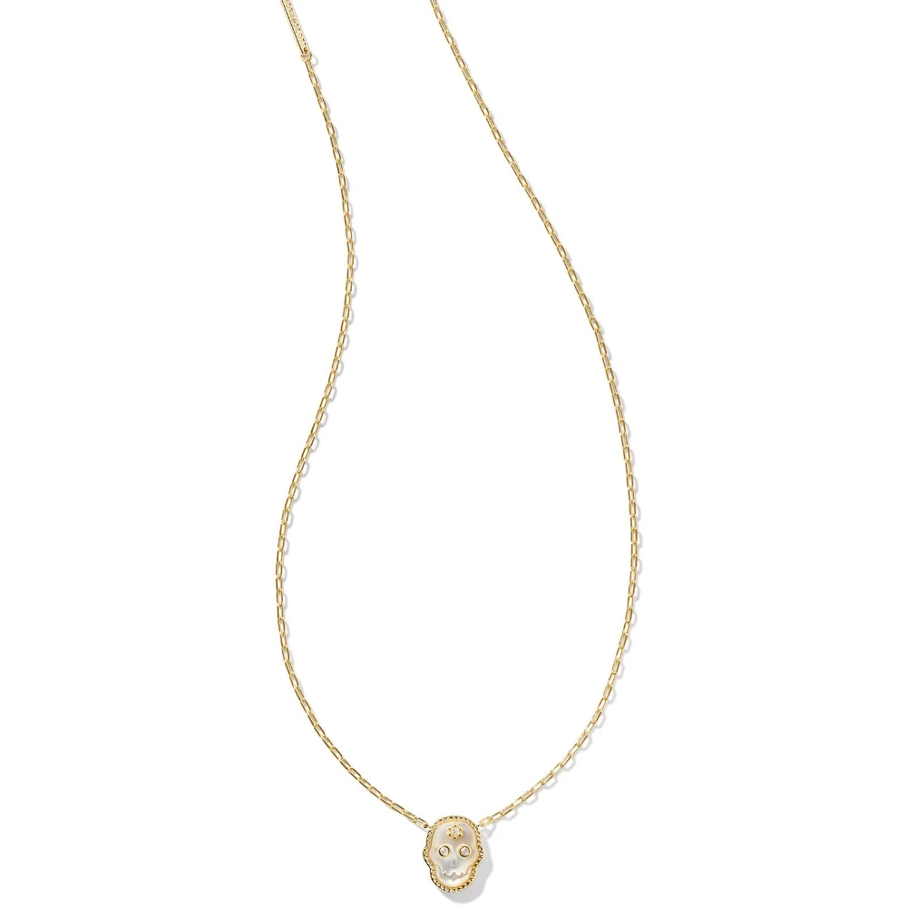 Frighteningly fashionable, the Skeleton Gold Short Pendant Necklace will put the spirit in your Halloween fits. A shimmering mother-of-pearl skull is framed by our signature hoofprint detailing, creating a seasonal style that’s so Kendra Scott, it’s spooky.