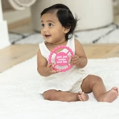 Like every other product, the Happy Teether was designed to solve a problem, but we wouldn’t be Bella Tunno if we didn’t make it fun. So in over 50 color and saying options, we dare you not to laugh when you’re picking the perfect one. The Happy Teether will quickly become your go-to for teething relief.Â